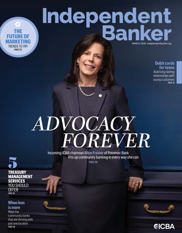 Sign up for the Independent Banker newsletter to receive twice-monthly emails about new issues and must-read content you might have missed.
